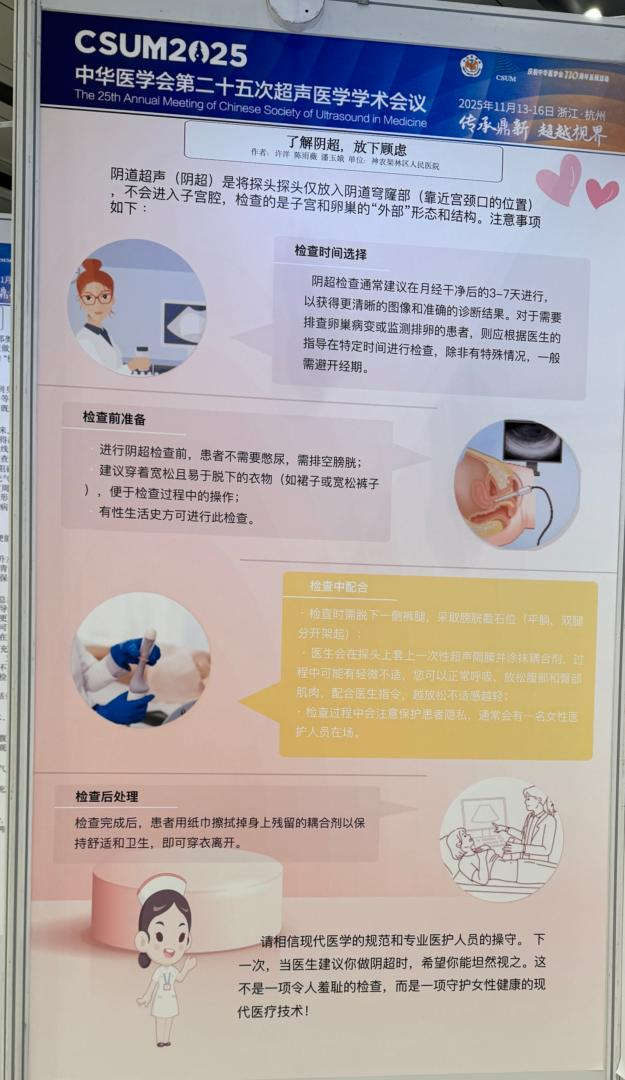 此次中稿论文涵盖多个领域,内容丰富实用。其中,科普作品《了解阴超,放下顾虑》被评为科普平面作品,在会议专属环节进行展示,致力于帮助女性消除检查顾虑。此外,儿科超声领域的《彩色多普勒超声用于小儿阴囊急症诊断中的应用价值分析》与心肌病变领域的《心脏超声应用于慢性心衰患者诊断及心脏功能评价中的作用研究》两篇论文均被评为壁报交流,于会场现场展示。