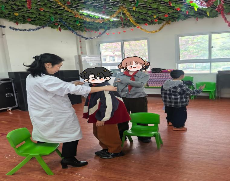 骨骼健康筛查,医护人员重点关注脊柱发育,排查高低肩、脊柱侧弯等问题,引导孩子们从小保持挺拔身姿。