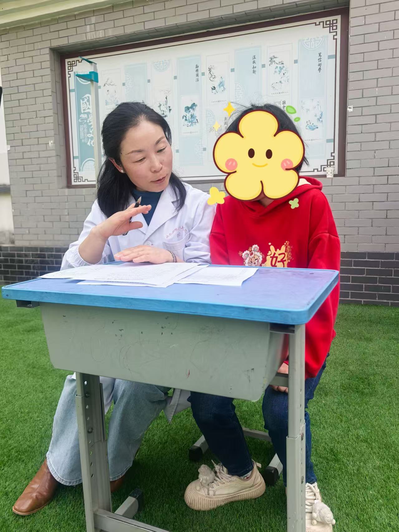 视力筛查现场,医护人员细致排查视力异常,孩子们有序配合检查,医护人员同时耐心科普正确读写姿势,将科学用眼知识传导至孩子们心中。
