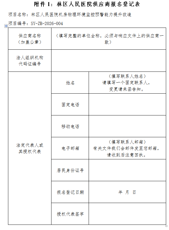 附件1:《林区人民医院供应商报名登记表》