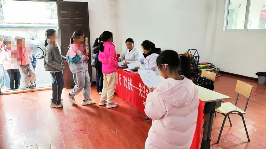 视力筛查现场,医护人员细致排查视力异常,孩子们有序配合检查,医护人员同时耐心科普正确读写姿势,将科学用眼知识传导至孩子们心中。